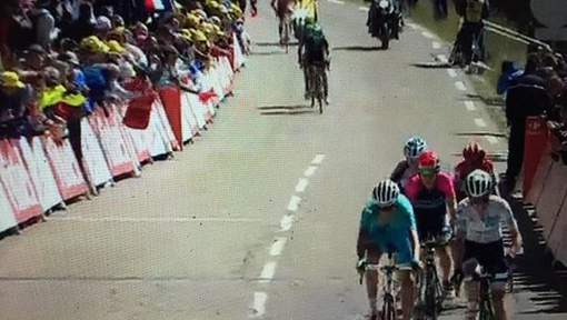 Edit: NOS: Trek, de ploeg van Bauke Mollema, heeft protest ingediend. Niet eens met de beslissing van de jury.