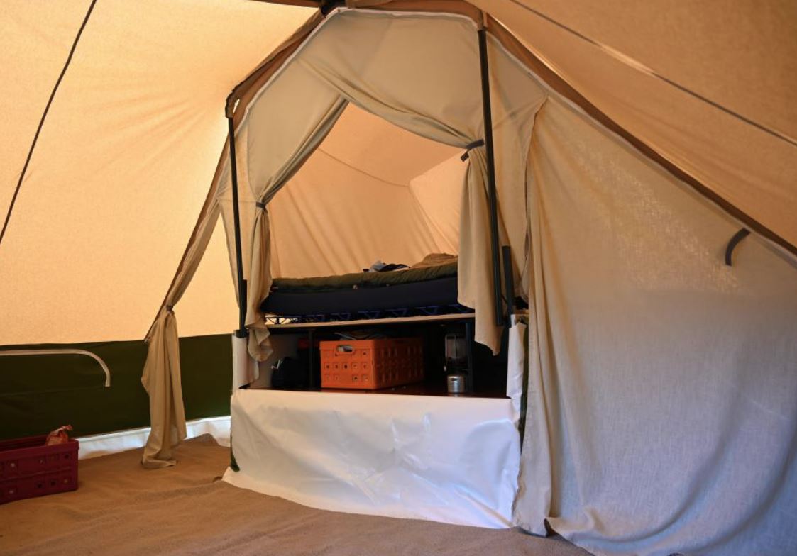 M'n dochter is zes en heeft haar eigen achtertent waar haar knuffels en speelgoed liggen en ze zich af en toe terug trekt om rustig te spelen.