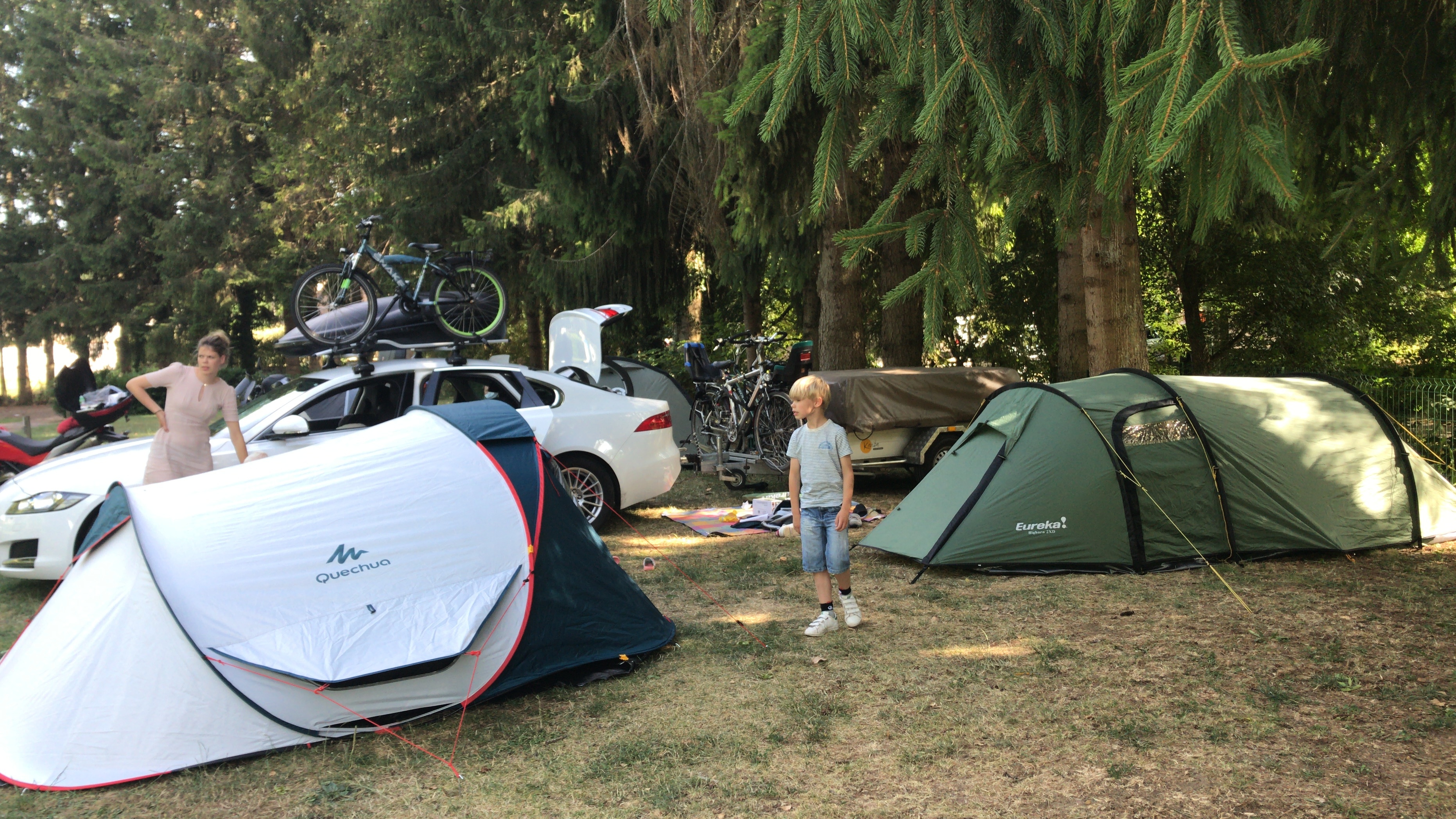 Wij zijn met z'n vieren maar de tent gaan we dit jaar met z'n tweeën opzetten. De kinderen zitten die dag op de BSO/KDV en die halen we ergens in de middag weer op om vervolgens thuis nog even een nachtje te slapen tot we met z'n allen naar de camping gaan.
