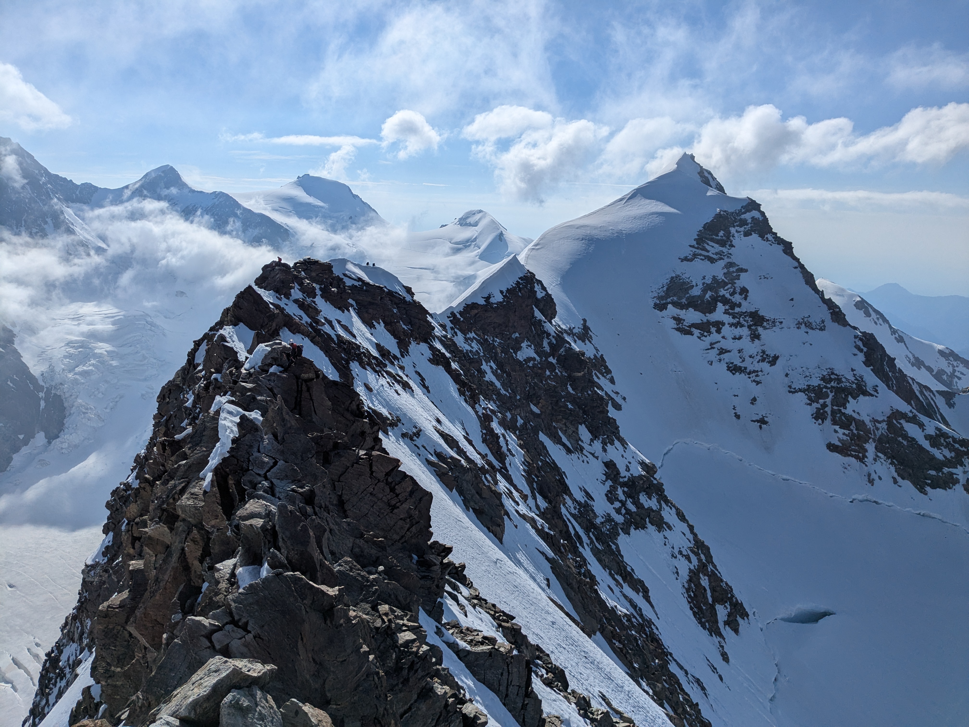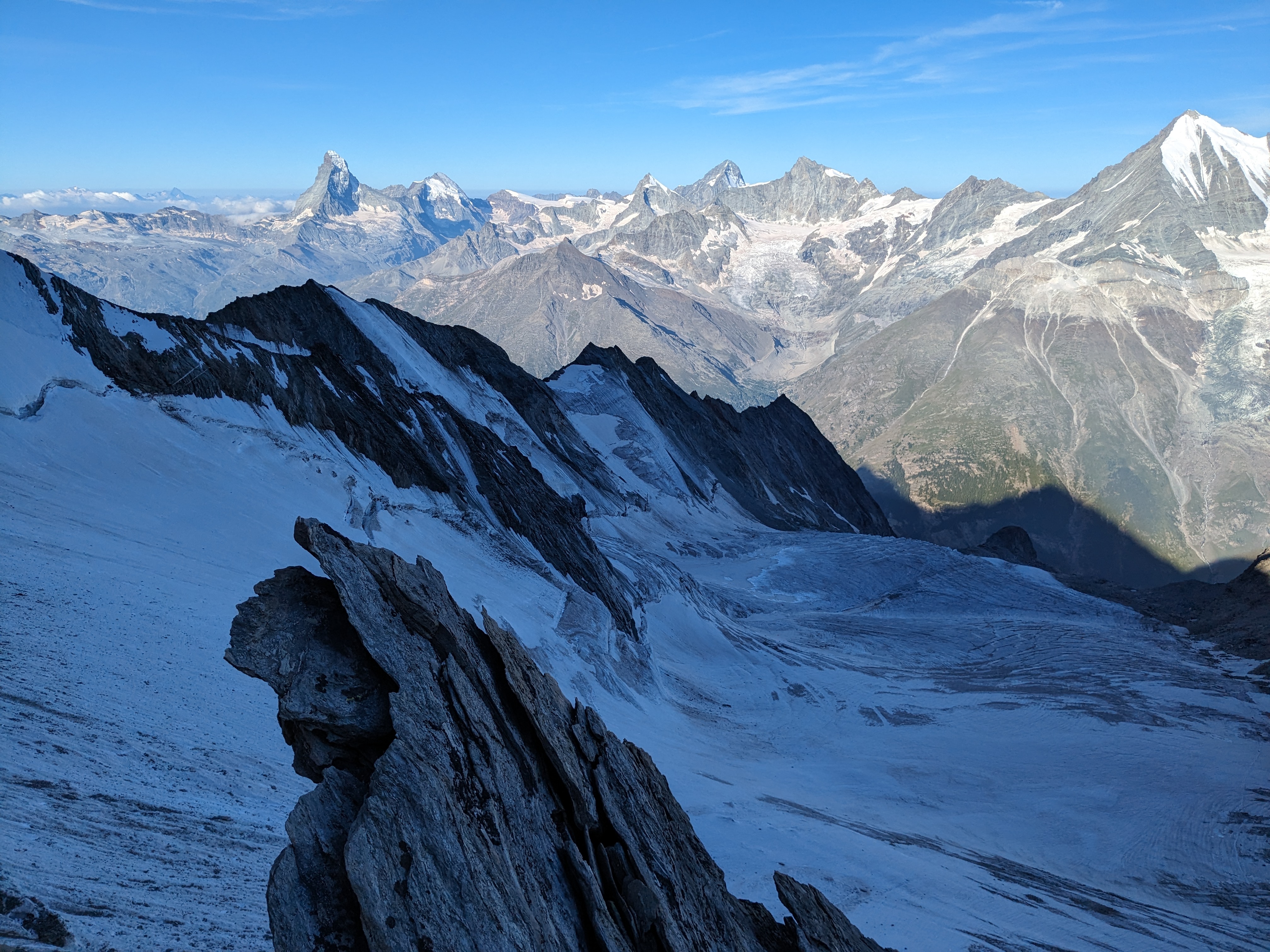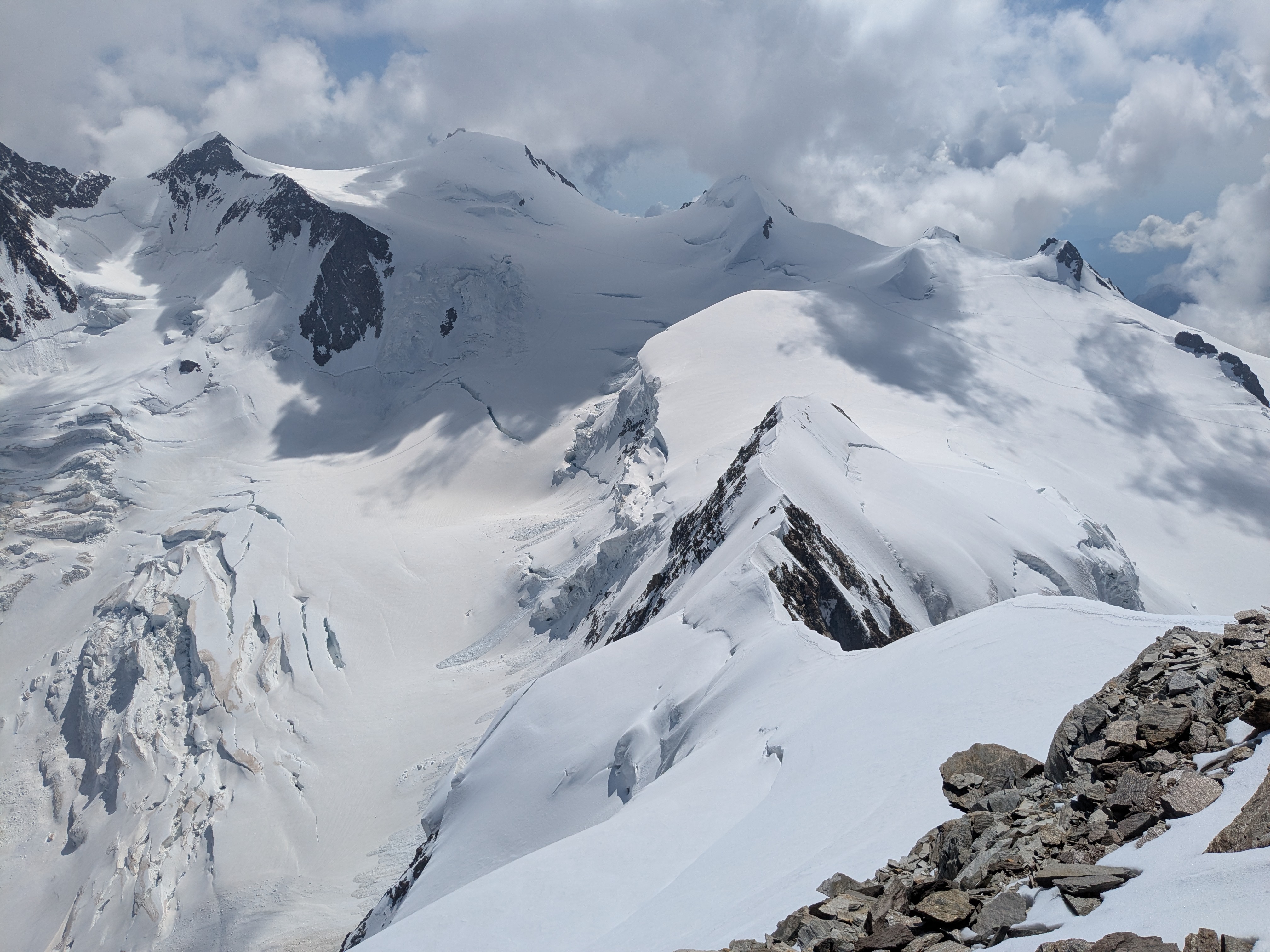 Ergens op de rotsgraat kijkend richting Lyskamm oost: