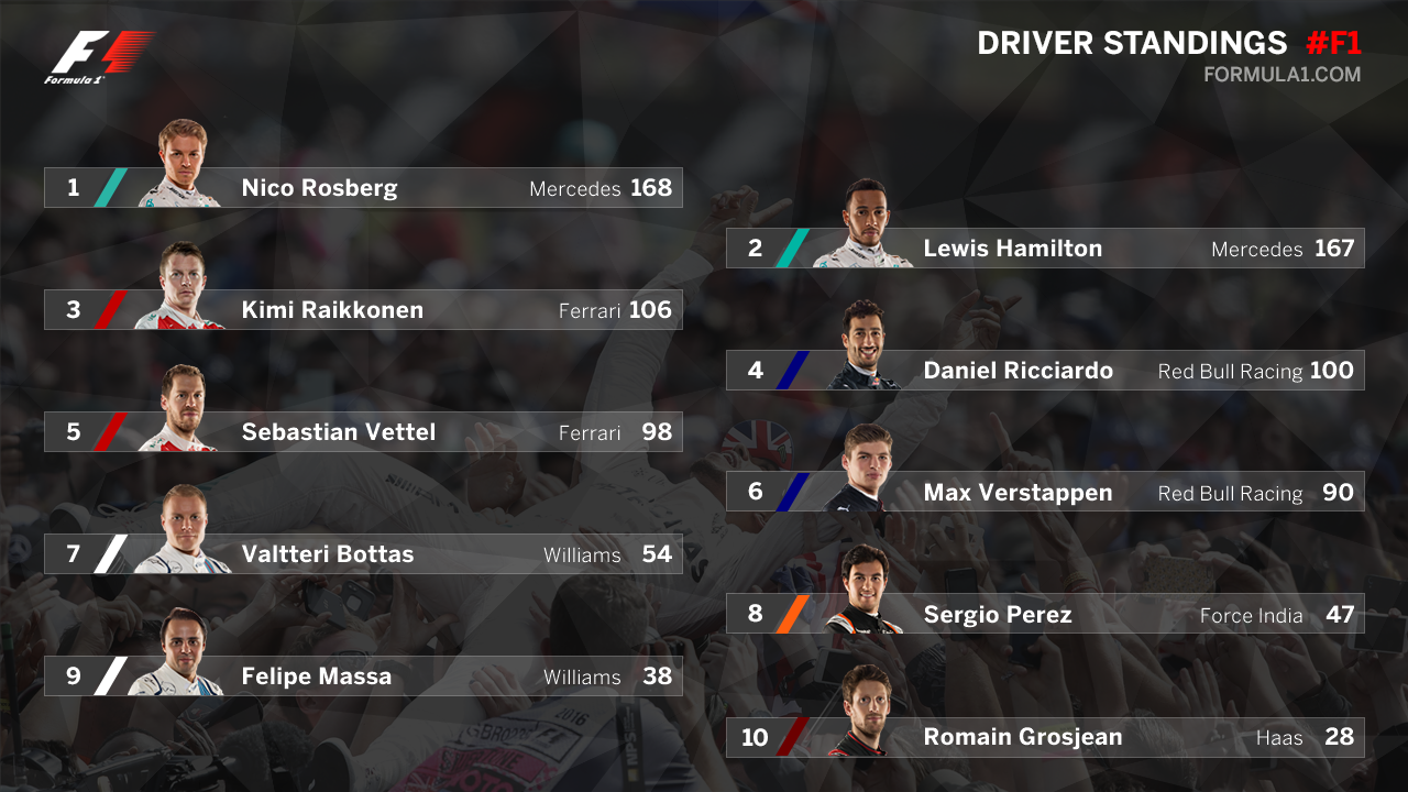 Hamilton als driver of the day? Waarom eigenlijk? Ik probeer het te zien maar zie het niet. Omdat hij zo ontzettend stond te puffen en te steunen achter het podium? Hij heeft niet eens de hele wedstrijd vooraan gereden. Het is een goede coureur maar ik zie deze race geen buitengewoon goede dingen die hij gedaan heeft behalve als Engelsman de home grand prix winnen... maar dat is ook niet eens zo buitengewoon.