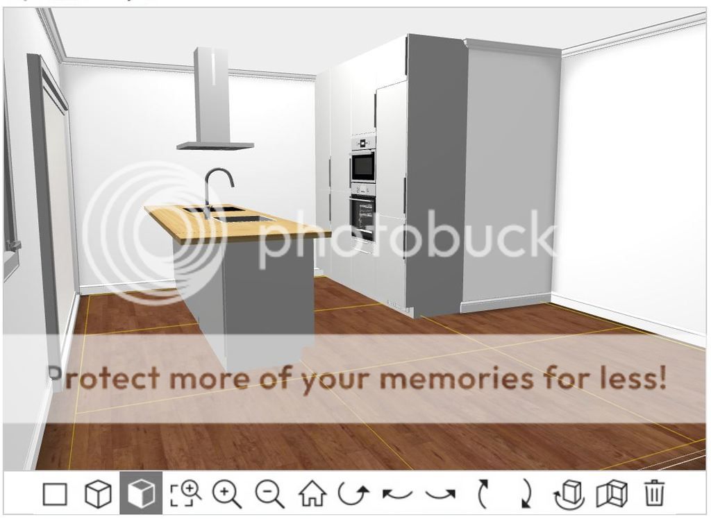 Een schiereiland of U-keuken willen we juist niet omdat we dan altijd om de keuken moeten lopen als we iets uit de keuken nodig hebben. Verder willen we juist wel aanvullende lage kasten buiten het eiland voor apparatuur (koffiezetapparaat ed) en als extra werkruimte als we met meer mensen gaan koken. De precieze indeling zijn we ook nog niet overtuigd van... Verder zie je inderdaad vaak dat de kastenwand "ingebouwd" is, maar ik ben zo bang dat de ruimte dan veel kleiner oogt, is dit terecht?