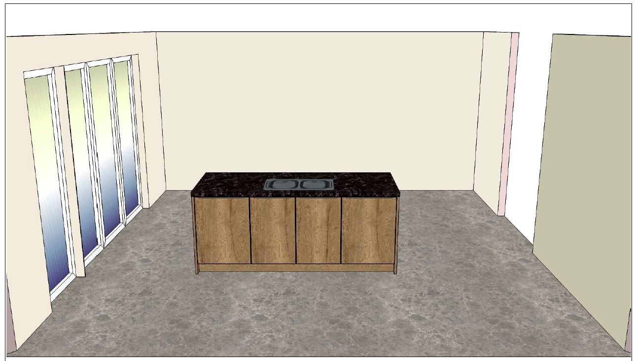 Probleem is dat het kookgedeelte aan de kopse kant komt, dus het gedeelte van 110. En de bar aan de andere kopse kant.