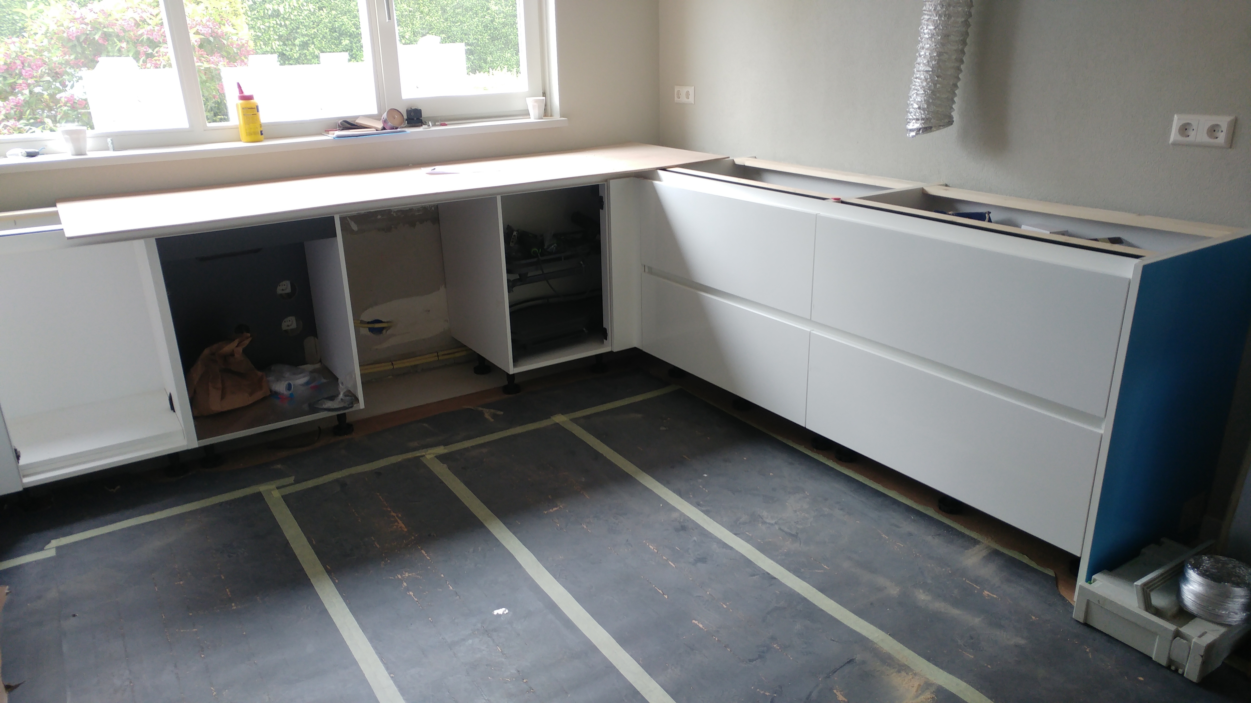 Verder moet er nog een extra stroomgroep voor de oven en een extra stroompunt voor de vriezer gemaakt worden. Ook het dichtzetten van de muur rondom de kastenwand wordt gedaan.