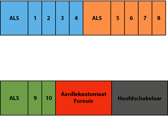 2. Stel ik neem 3x25A, dan heb ik ermee te maken dat (als ik het goed zie (zie foto hier beneden)) dat de fornuisgroep verdeeld moet worden over 2 fases. Echter wat ik nu zie is dat de fornuisgroep maar op 1 aardlekschakelaar zit aangesloten en dus ook maar op 1 fase ook al zou ik 3x25A nemen? Dient er nog een keer een monteur langs te komen die mijn fornuisgroep na het aansluiten van 3x25A over 2 aardlekschakelaars aan moet sluiten of kan dit eerder? Of is mijn huidige installatie gewoon niet goed aangelegd door de elektricien en dient er meer aan te veranderen?