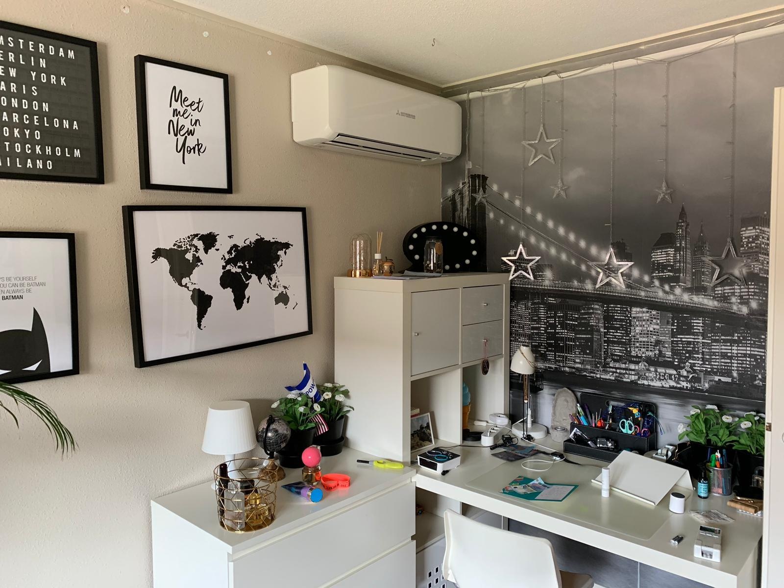 Voor we de airco hadden werd het hier boven 30+ graden. De hele bovenverdieping heeft een plat dak en er zijn 3 grote ramen die vol in de zon staan.