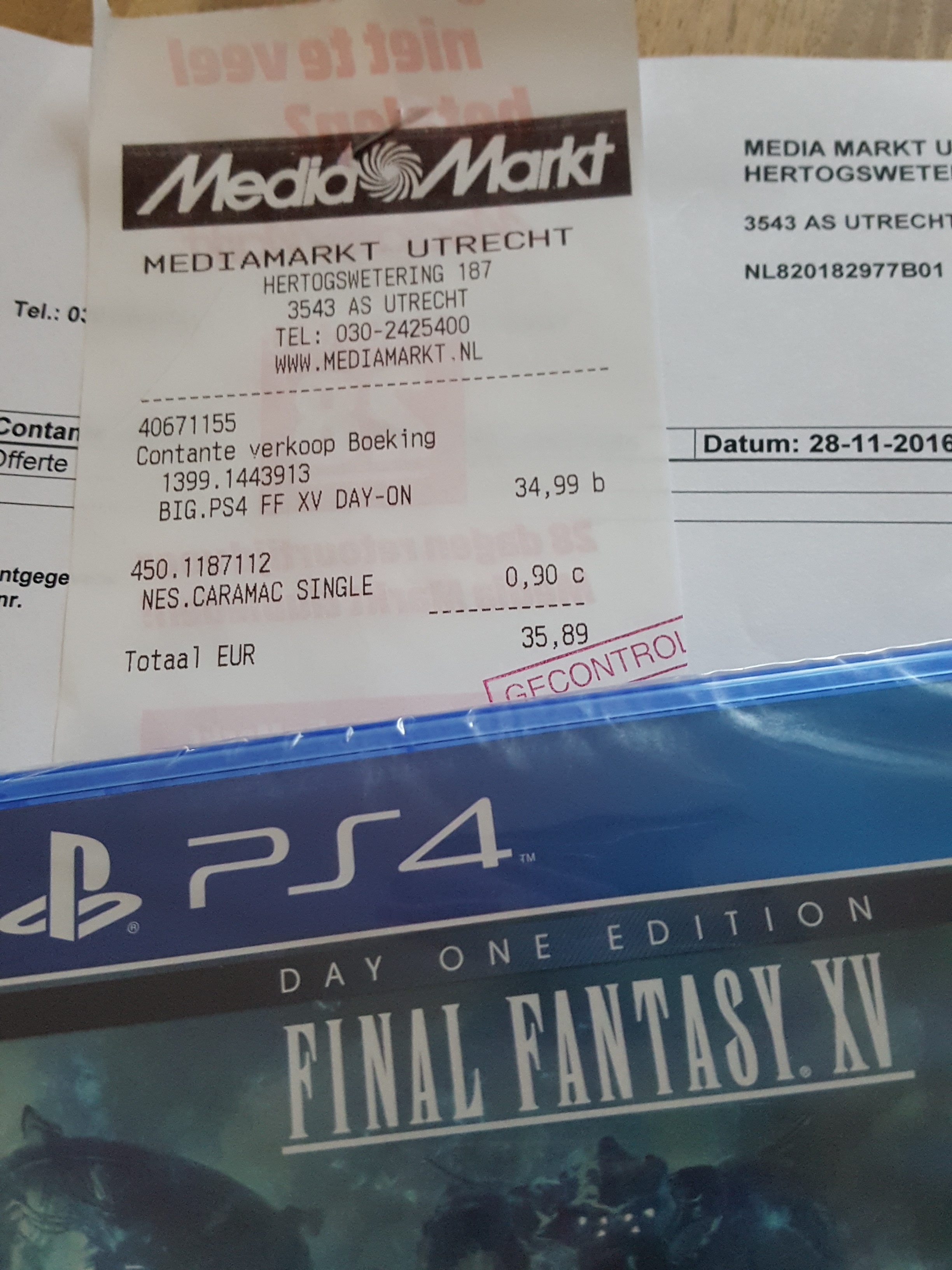 Ik zie in de mail met de retourbevestiging (met bon die ik op de doos moet plakken om de machine terug te sturen) dat het serienummer niet overeenkomt met wat er thuis op mijn PS4 staat. Hij past dat aan en vervolgens stelt hij dat de machine net een jaar buiten de garantie valt en dat ik reparatiekosten moet betalen à € 150,-