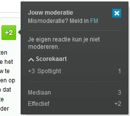 Jawel. Er is was in dit geval éénmaal +3 gegeven door een beginnende moderator, dat wil zeggen: Een moderator die minder dan dertig dagen actief is en/of nog geen honderd moderaties heeft gedaan. Beginnende moderators hebben een weging van 1 (hence +3 spotlight 1 in je screenshot).LankHoar schreef op maandag 08 augustus 2016 @ 16:21: