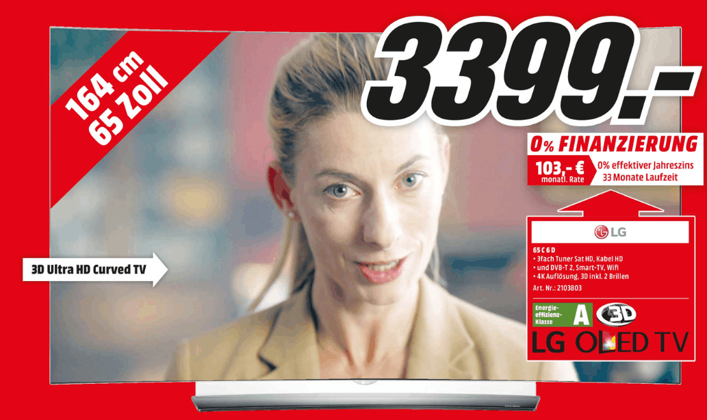 Voor de liefhebbers van curved, de 65C6D is nu EUR 3399,- bij Media Markt in Köln Kalk.