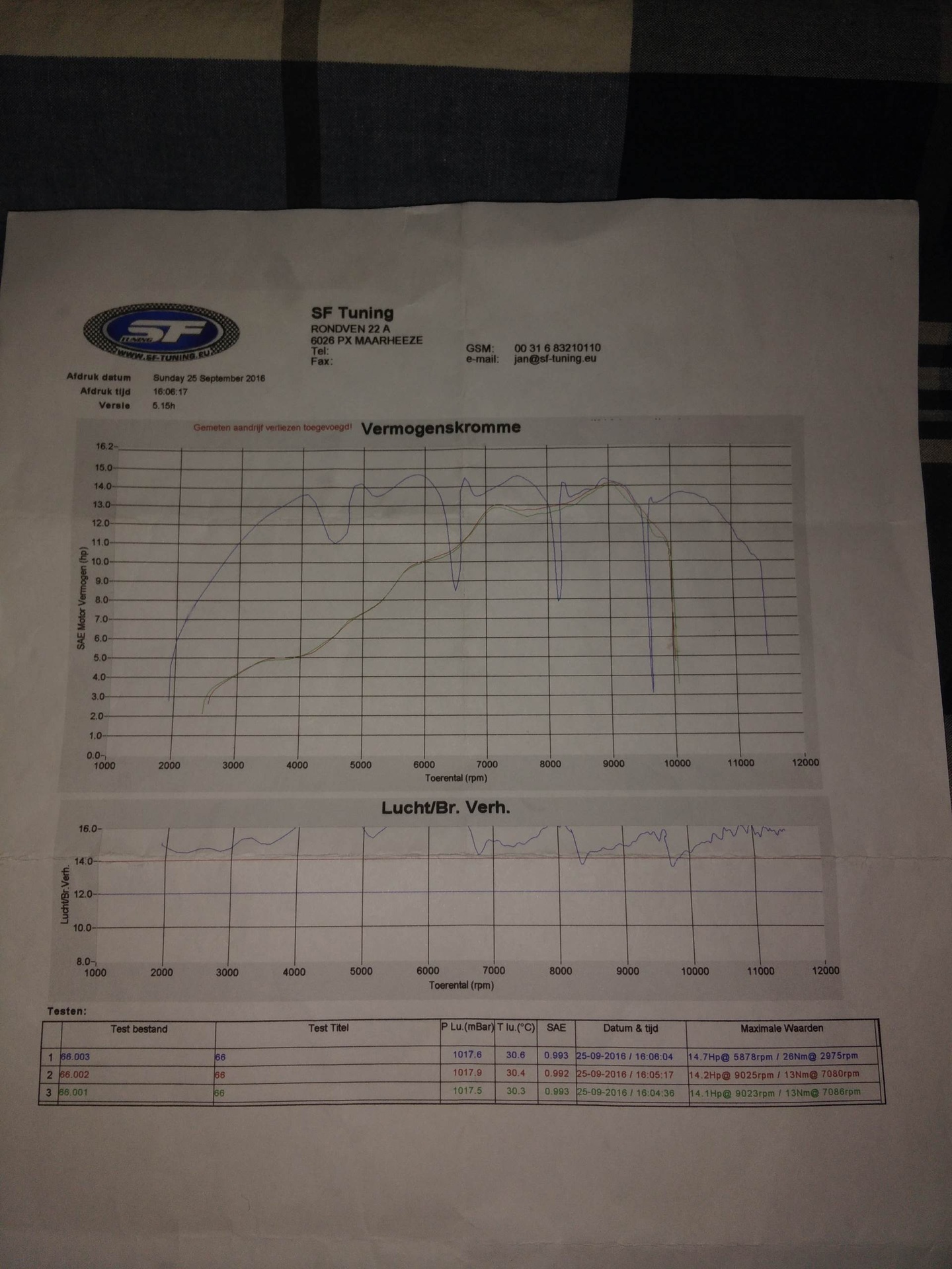 Edit: Puur voor vermogen zou ik een motor trouwens nooit laten mappen. Ik heb het puur gedaan om het slechte lopen beter te maken. Gevaarlijk arm lopen is natuurlijk ook een reden.