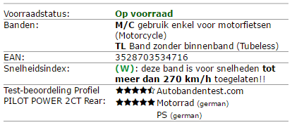 Misschien zijn er een aardig aantal geavanceerdere sportbanden op de markt nu, veel van deze banden halen vaak niet de levensduur van een 2CT. Heb heel wat uurtjes research gedaan en de 2CT is een van de weinige banden waar je prima mee uit de voeten kunt op het circuit maar waarmee je ook heel wat km's kunt maken (en dan heb ik het niet over 5.000 km max maar bv. 9.000-10.000 km max). 2CT valt een beetje tussen zo'n Pilot Road of een nieuwe sportband in.