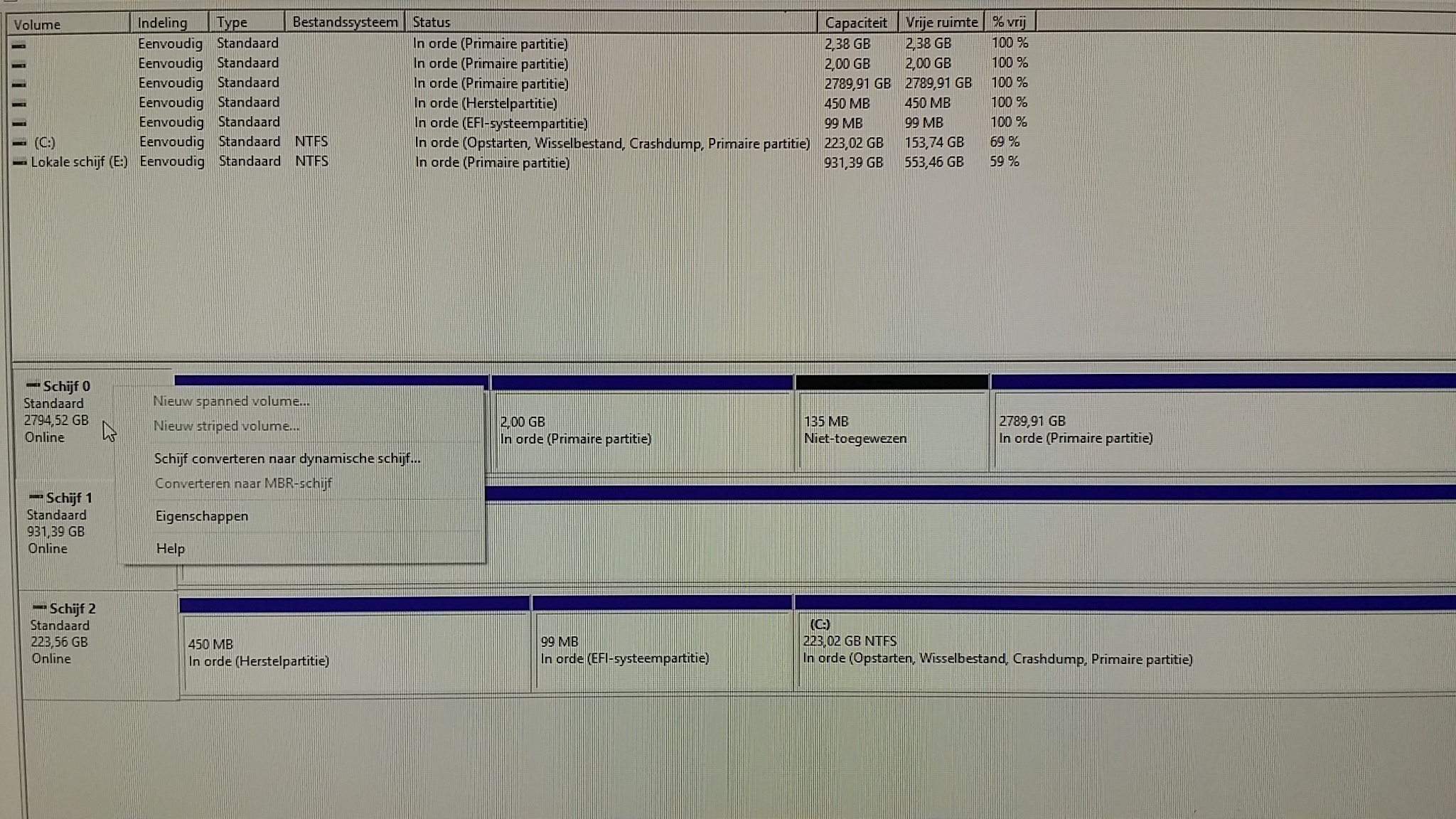 In schijfbeheer heb ik alleen maar de optie om de schijf te converteren naar een dynamische schijf.