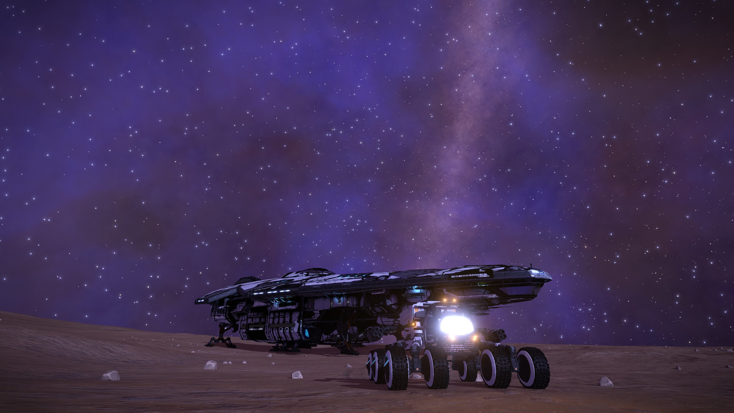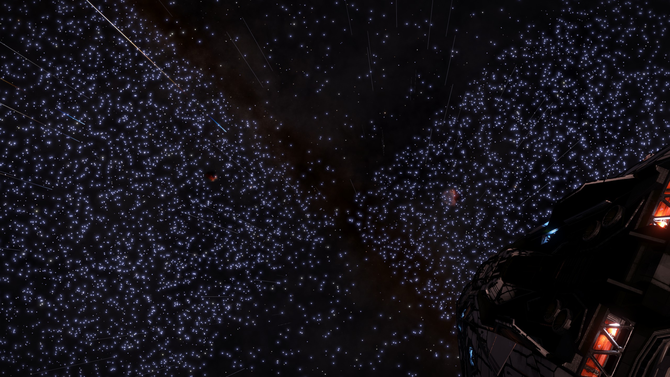 De skybox (alles buiten de melkweg) mag van mij wel wat kleurrijker en meer gevuld. Bijv. Andromeda is echt miniem in ED terwijl het zeker vanuit de ruimte veel duidelijker te zien zou moeten zijn.