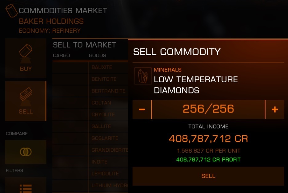 Maar damn, 1,6M per ton, das wel heel erg lekker, ik vond 900K al prima, en zelfs de 450K die je er in Colonia maximaal nog voor krijgt is het (tot ik mijn MKII heb iig) nog wel waard om zo af en toe een uurtje te minen....