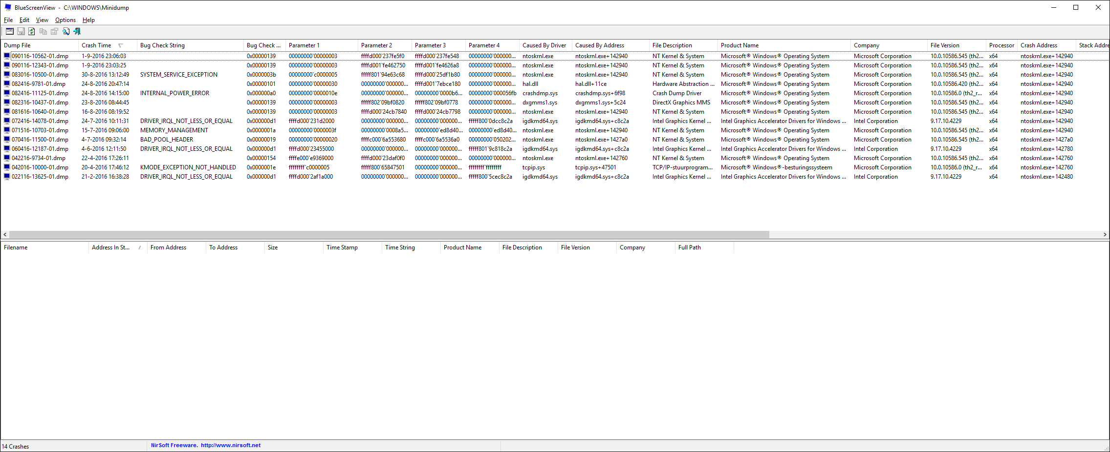 Zeker niet elke crash resulteert in een dumpfile. Met name de freezes en moeizame starts zijn niet te zien.