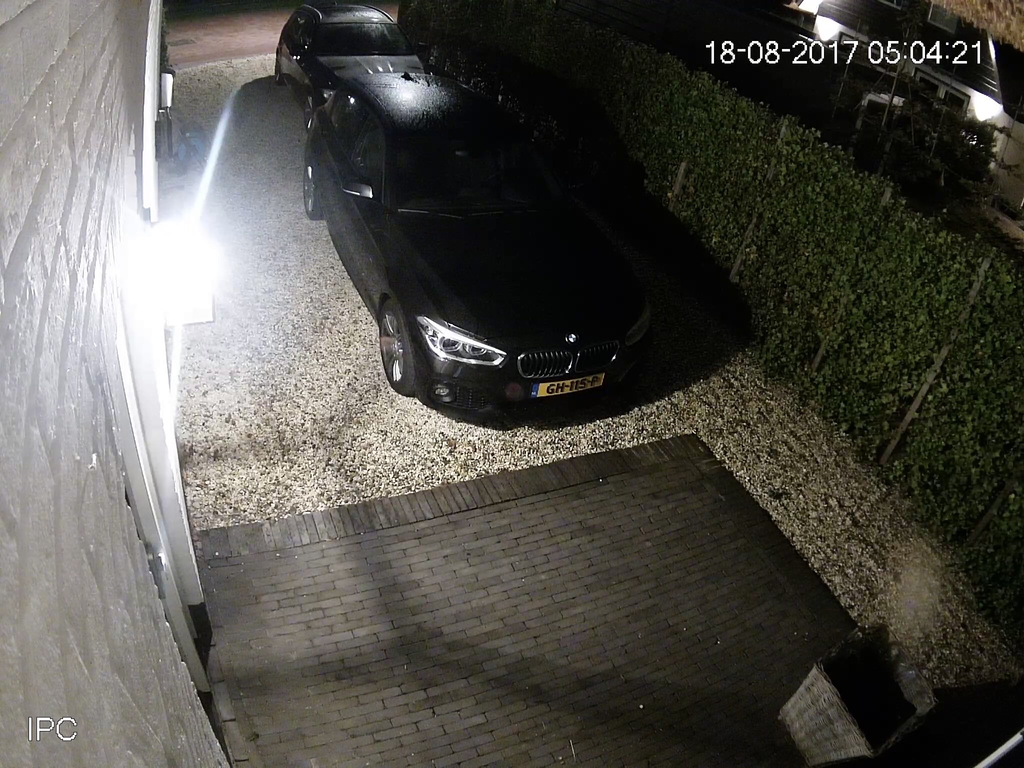2.8 mm lens die auto op eigen grond in de gaten houdt ziet nog veel van de straat, maar weinig details. Dat komt pas als ze naast de auto staan.