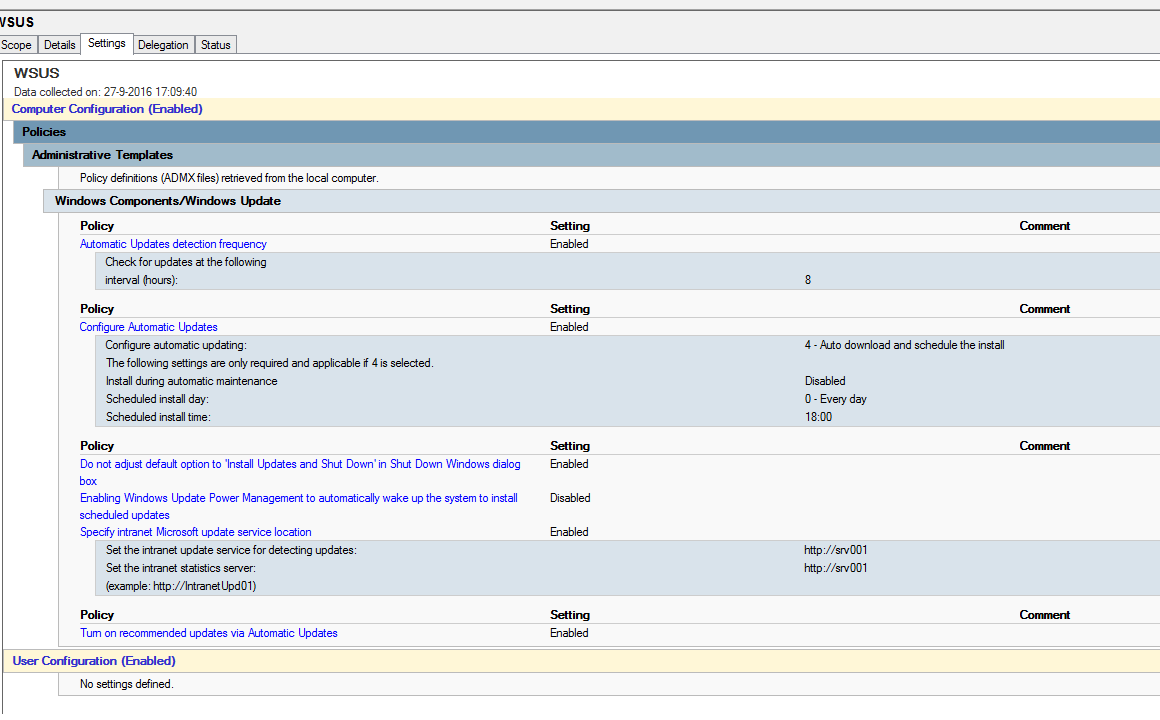 Hou er trouwens ook even rekening mee dat je met WSUS enorm veel geduld moet hebben voordat reports gaan lopen en uiteindelijk updates gaan stromen.