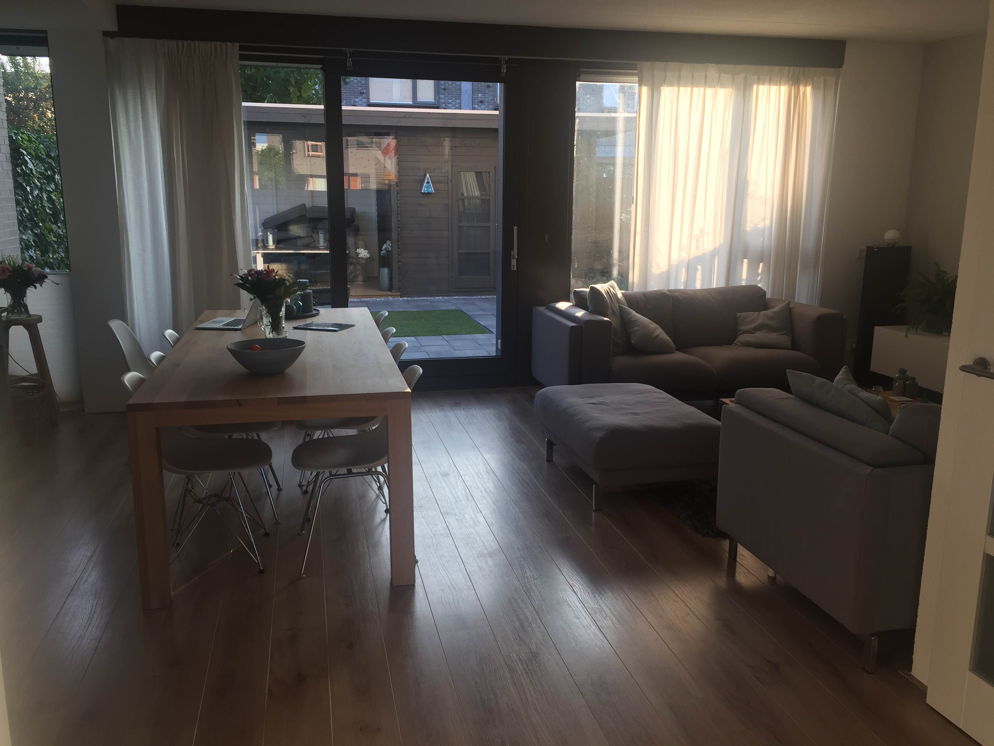 Om te beginnen trap ik af met een 2 tal foto's die het probleem al goed weergeven. Geen ruimte voor vloerstaanders, ze zijn min of meer weg gepropt achter de bank.