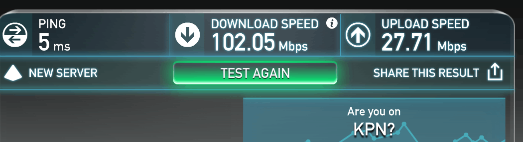 Nu de snelheid nog omhoog en ben helemaal tevreden.