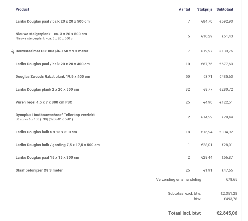 Ik heb alles gemaakt van resthout wat ik toevallig had liggen, behalve de dikke balken; die heb ik goedkoop kunnen kopen bij een houthandel die in sloophout doet.
