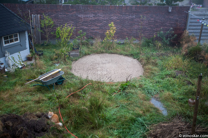 Tuinhuis binnen wordt 3m x 4,5m, met oversteek van 1m.