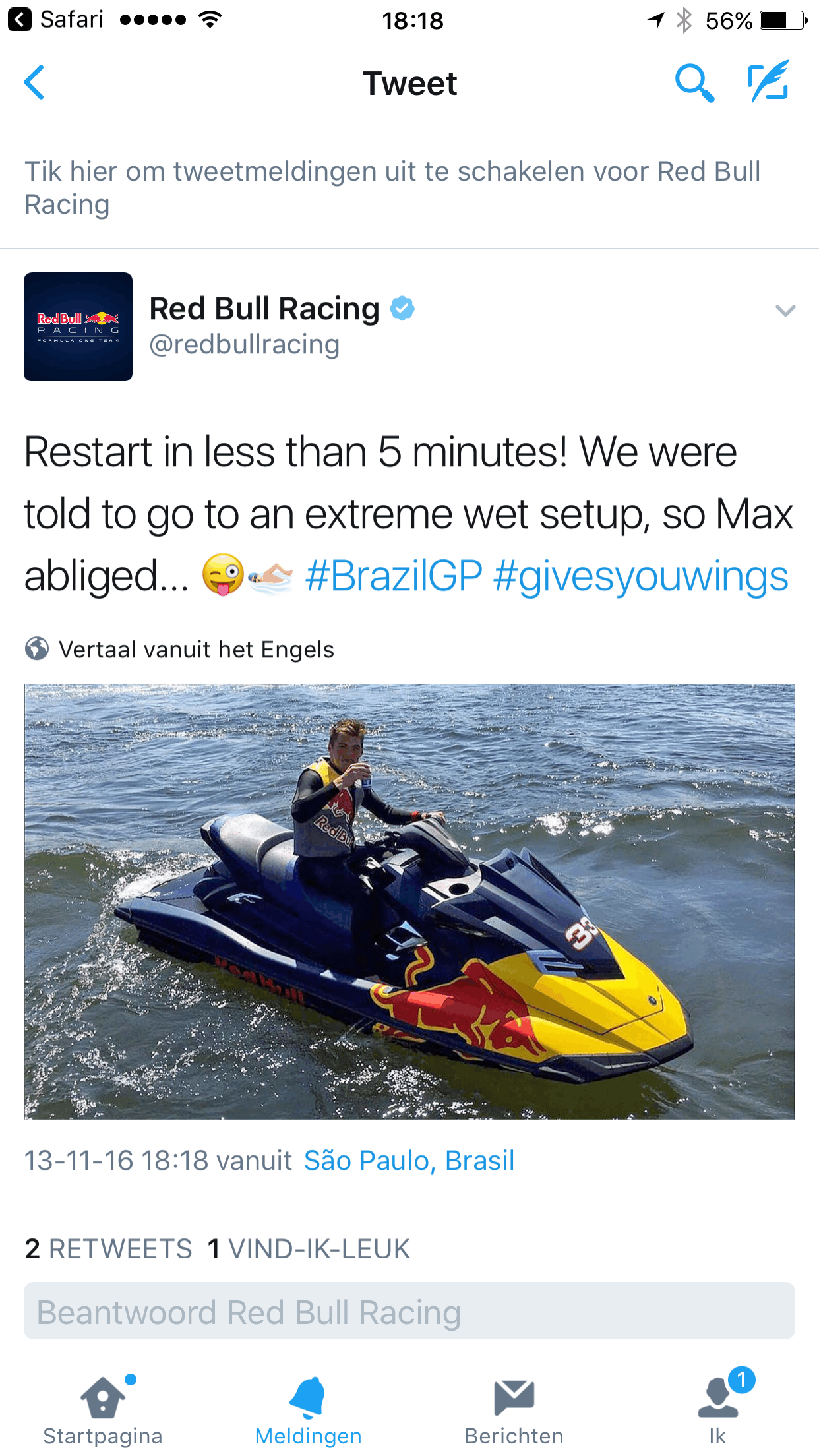 Zijn helm lekte water erin, dus om veiligheidsredenen mag hetnachtnet schreef op zondag 13 november 2016 @ 18:22: