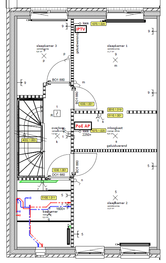 - Op 1e etage (50m2) een tevens een wifi-ac verbinding via een PoE access point (Ubiquiti?)