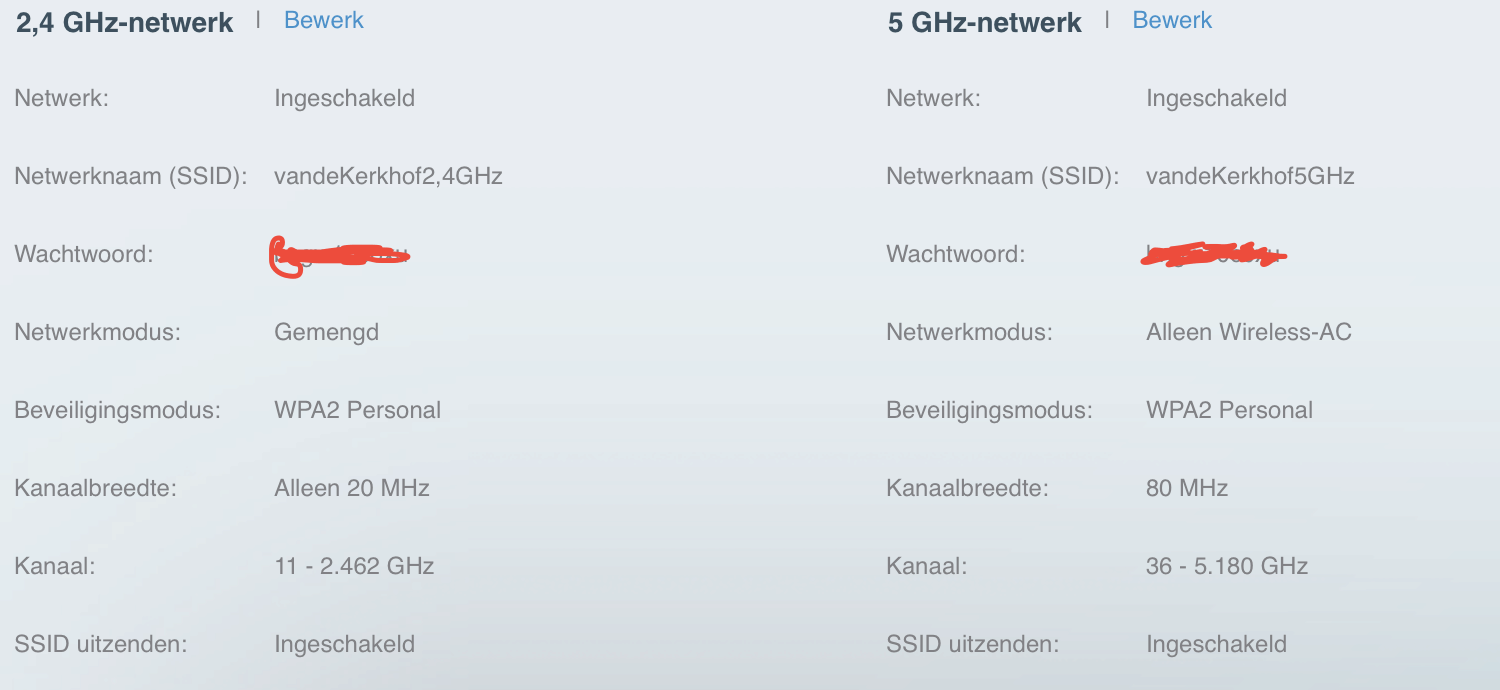 De Linksys router staat op de begaande grond in de woonkamer, de 5GHz werkt perfect alleen de 2,4GHz is heel slecht. Op een afstand van 1 meter behaal ik hier maar 10 mbps mee via de wifi. Dit zou natuurlijk veel meer moeten kunnen zijn. Een verdieping hoger behaal ik nog maar 2/4 mbps en valt hij soms gewoon weg. Er zijn ook bepaalde momenten dat ik boven wel weer de 25mbps haal maar dit gebeurt niet vaak.