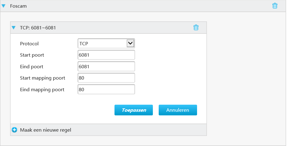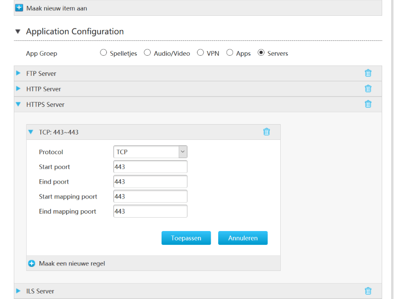 Naast dat het instellen van portforwarding nu veel meer geneuzel is met rules die aan applicatienamen gekoppeld moeten worden, viel het me ook op dat je zelf geen losse interne en externe poort meer kunt kiezen. Het geheel werkt nu met portranges die 1-op-1 doorgezet worden.