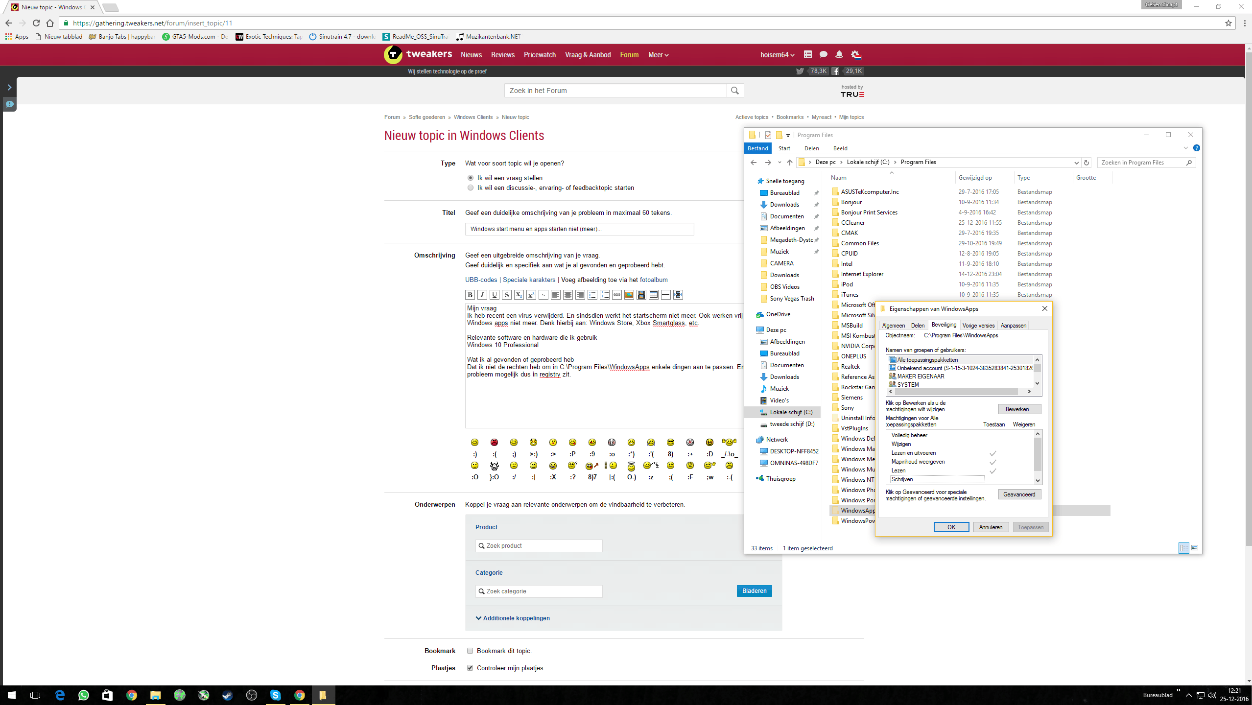 Dat ik niet de rechten heb om in C:\Program Files\WindowsApps enkele dingen aan te passen. En dat het probleem mogelijk dus in de registry zit.
