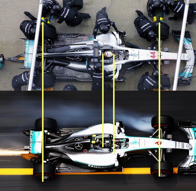 Let je wel op dat de auto's niet gelijk staan? Er is wel een verschil te zien, maar op de onderste foto staat de auto meer naar rechts. Geen 1 lijn komt overeen (draag''armen'' staan niet gelijk, voorvleugel niet, en de achtervleugel ook niet, hoewel de achtervleugel inderdaad iets aangepast is).nachtnet schreef op vrijdag 24 februari 2017 @ 01:11: