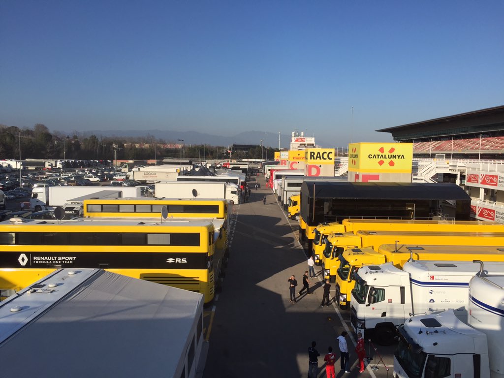 Paddock in Barcelona is weer goed gevuld met motorhomes etc.