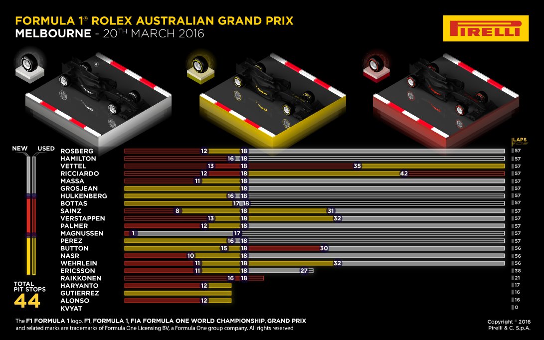 Ricciardo reed de snelste ronde omdat hij laat (42/57 ronde) naar de supersoft ging. Dat was vorig jaar de snelste band. Dit jaar neemt Pirelli de Ultrasoft mee (naast Supersoft en Soft).BlauweFles schreef op maandag 20 maart 2017 @ 11:37: