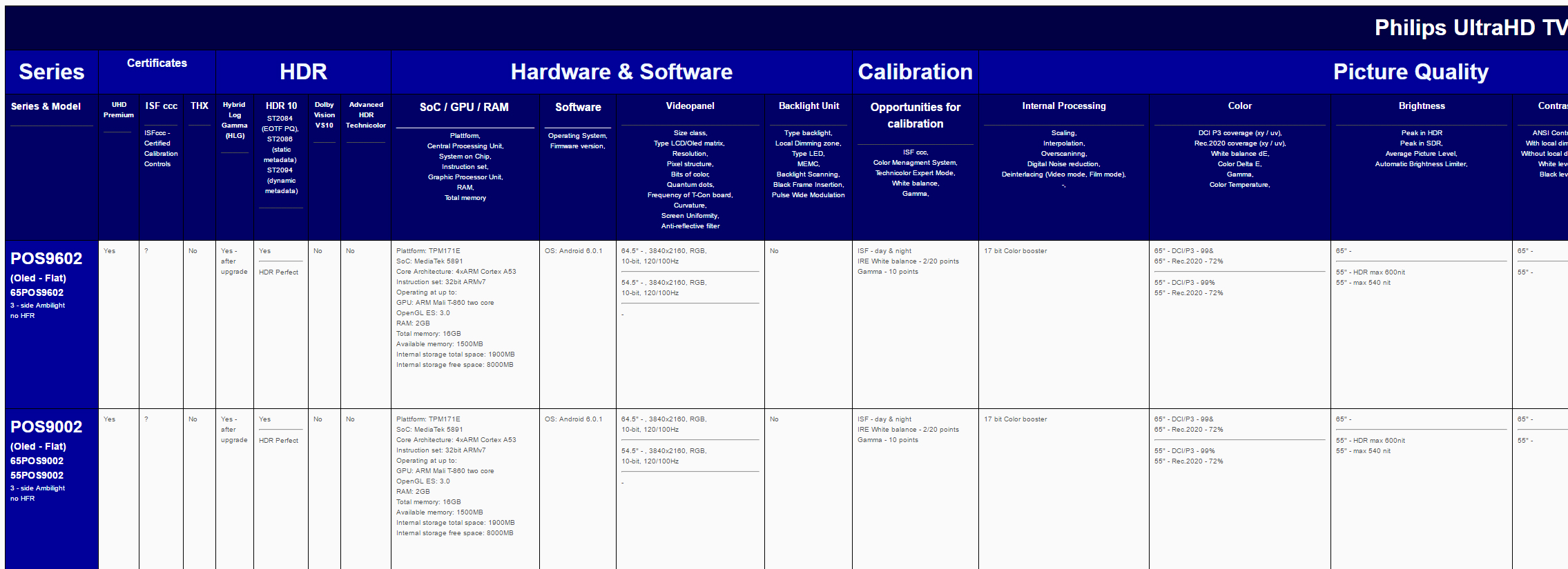 Maar Philips OS Android heeft wel voorheen altijd problemen gehad heb ik van velen mensen vernomen. Maximum luminantie als 653 nits, is op de Philips gemeten, dat is minder dan de LG (730) wordt er gezegd in reviews. Maar de piek luminantie echter is enkel nodig voor een aantal lichtaccenten. Bij Oled is dat minder belangrijk, aangezien per pixel een eigen licht en dimming geeft. Wat jammer is dat de Philips ook maar alleen HDR10 ondersteund en geen Dolby Vision. Maar ook geen 3D ondersteuning (wat met alle 2017 modellen het geval is helaas)