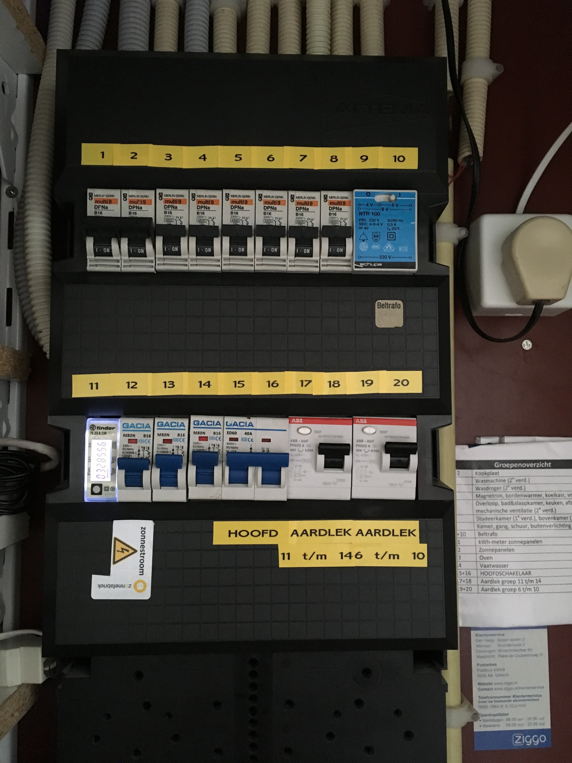 Zie ik er nu maar 1 aardlek (verliesstroom) zitten of zijn ze dat allemaal? Ik weet niet hoe het in BE zit, maar in NL mag je max 4 automaten achter een aardlek hebben.ijske schreef op woensdag 19 april 2017 @ 18:33: