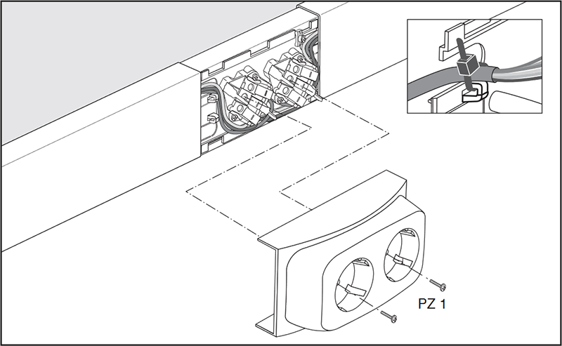 Het probleem is dat de K40-goten niet ruim genoeg zijn om kabels te laten kruisen (bovenste kabel naar beneden en vice versa) en dat om wcd's goed aan te sluiten de kabels gekruist dienen te worden.