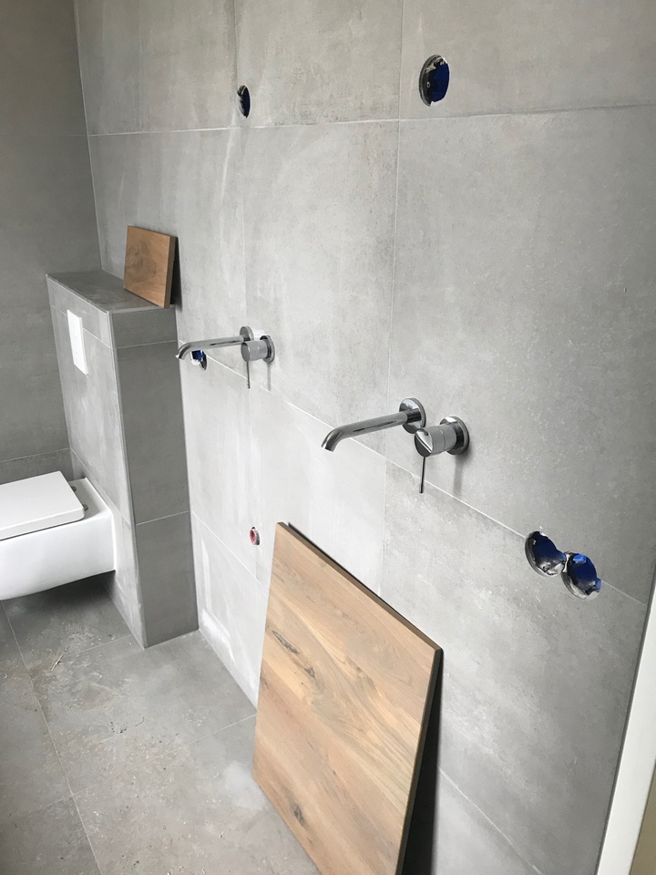 Daar zijn ze misschien een half uur mee bezig geweest. Veel langer zal het niet zijn. Het is een kleine badkamer waarbij de layout niet veranderd hoeft te worden. Die kan niet anders dan 'ie nu is.