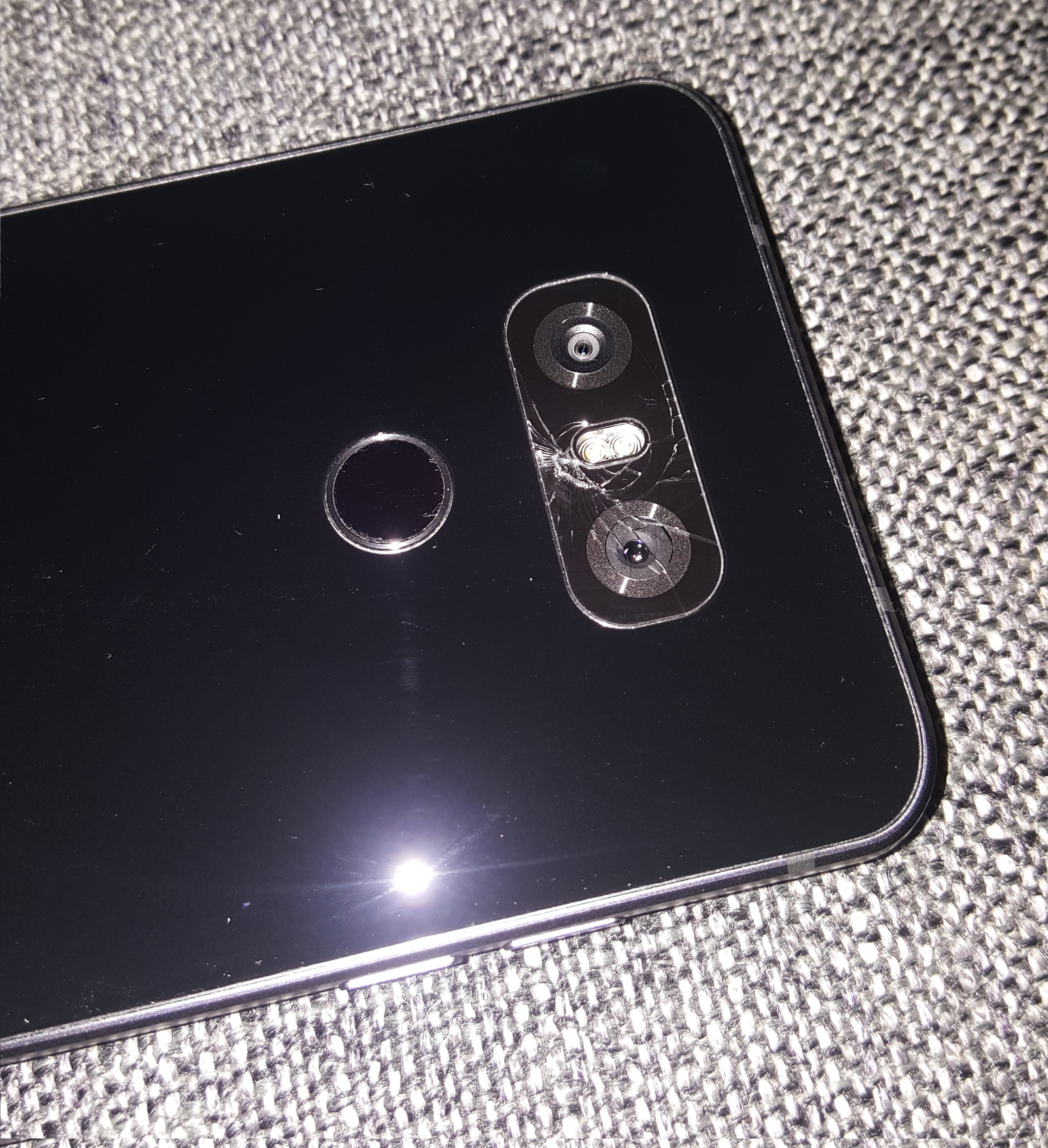 Hier nog iemand met een gebarsten lens covergeen idee hoe het gekomen is, maar aan de schade te zien lijkt er een drukpunt te zijn geweest op het meest kwetsbare dunne deel (onder de flitser).