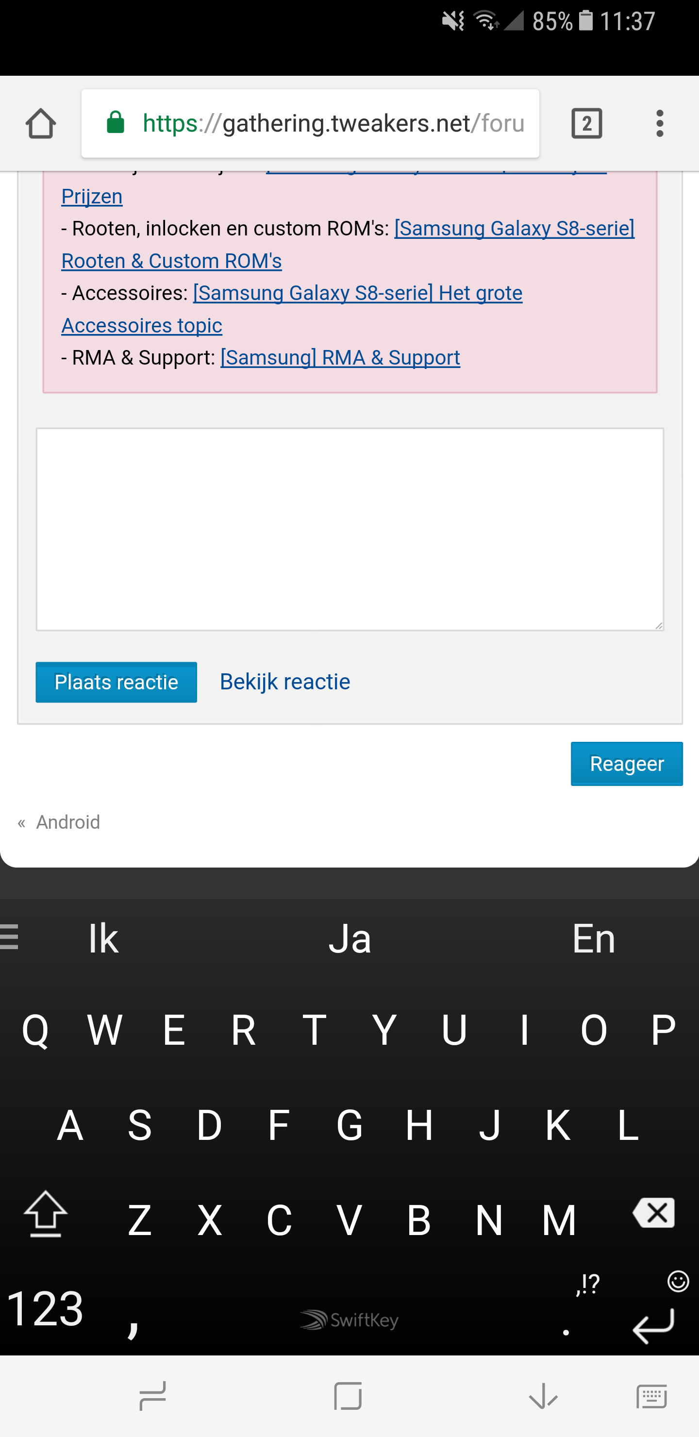 Ik heb de navigatiebalk al in instellingen zwart gemaakt en daar springt hij ook op. Behalve bij een Samsung of SwiftKey toetsenbord schiet hij snel weer op wit.