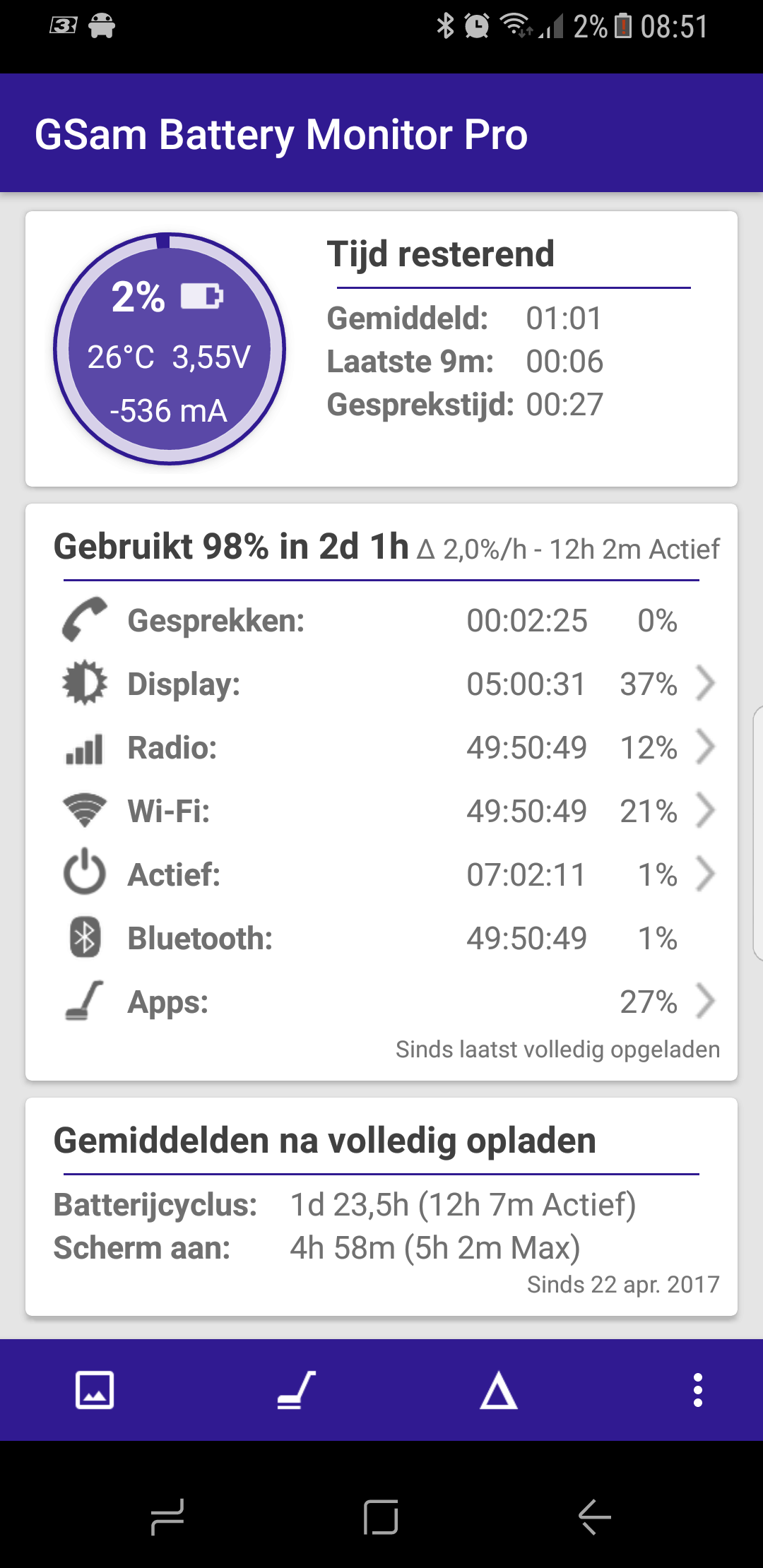 Ik lees dat meerdere mensen niet tevreden zijn over het uithoudingsvermogen van de batterij. Ik gebruik de S8+ nu twee weken en heb nu wel een aardig beeld over de batterij. Er zijn dan mensen die reageren dat je hem toch elke nacht aan de oplader kunt leggen en er niet zo'n probleem van moet maken. Ik ben zelf ook wel een type die zo lang mogelijk met de batterij wil doen.