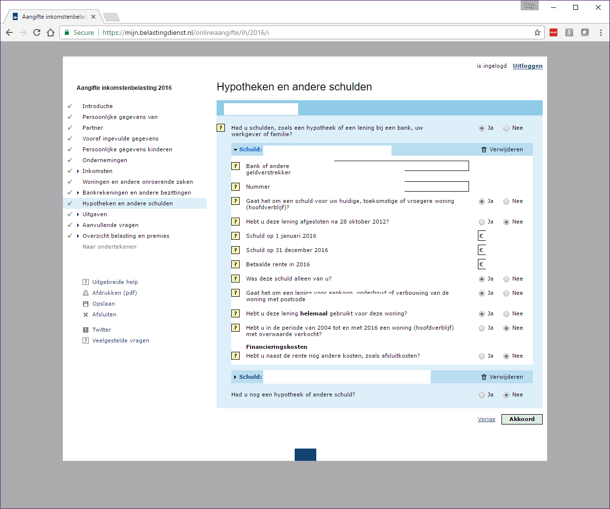 Loonheffingskorting: nee