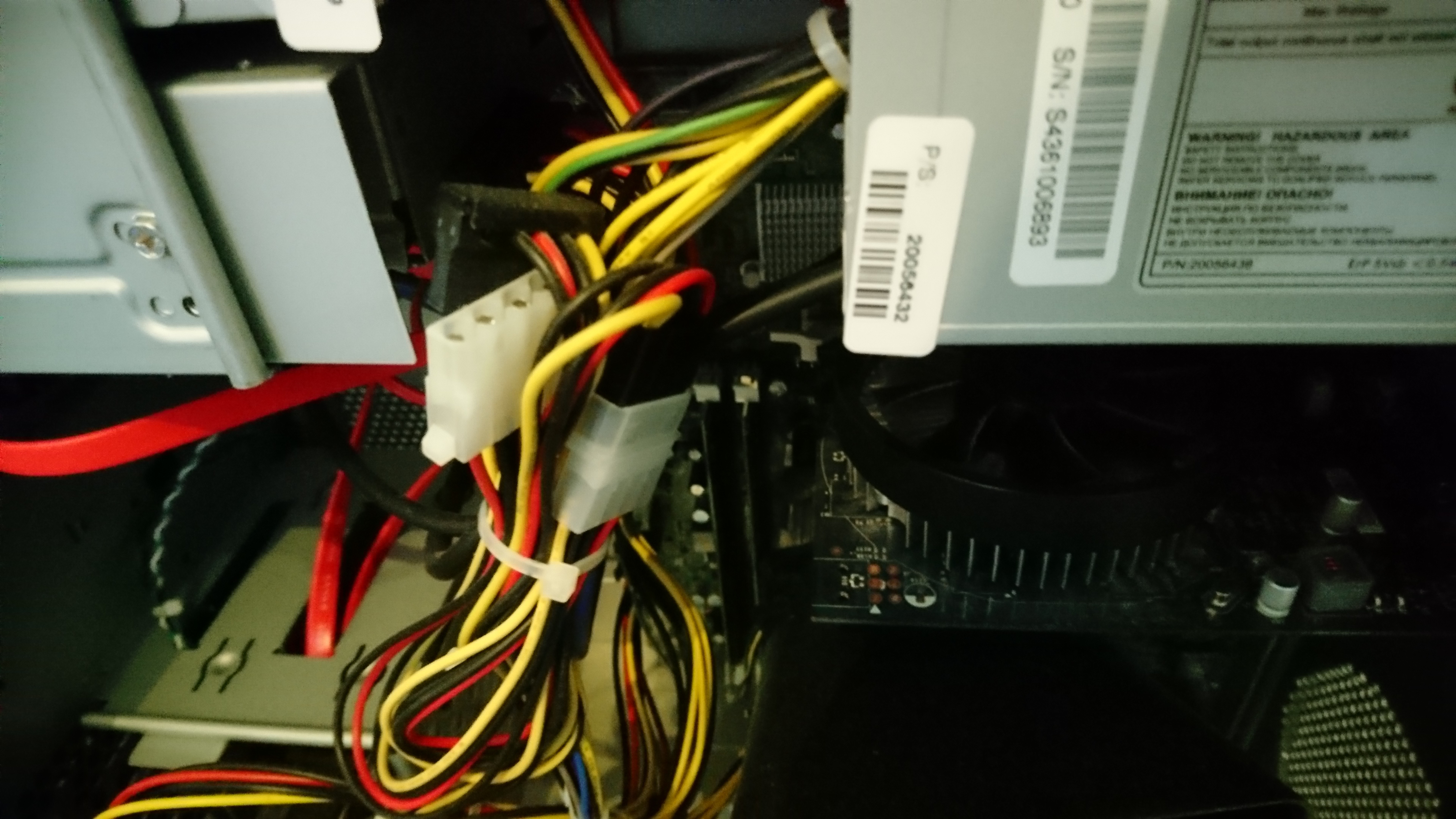 Hier een niet zo scherpe foto van wat kabels, zover mijn kennis over kabels gaat zit hier geen 6-pin aansluiting bij.