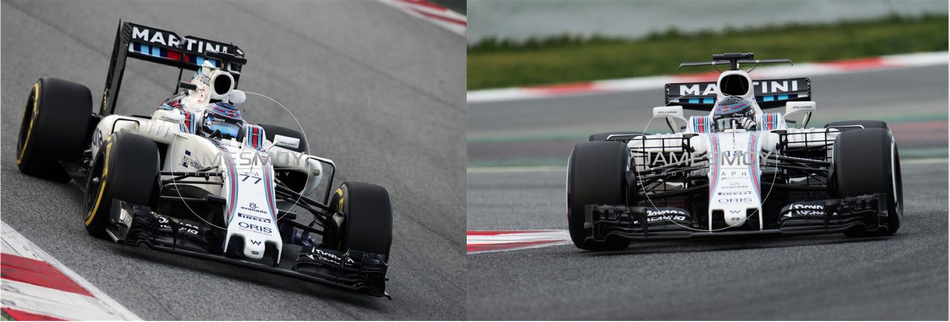 Zie net de foto dat Mercedes een dubbele T wing heeft