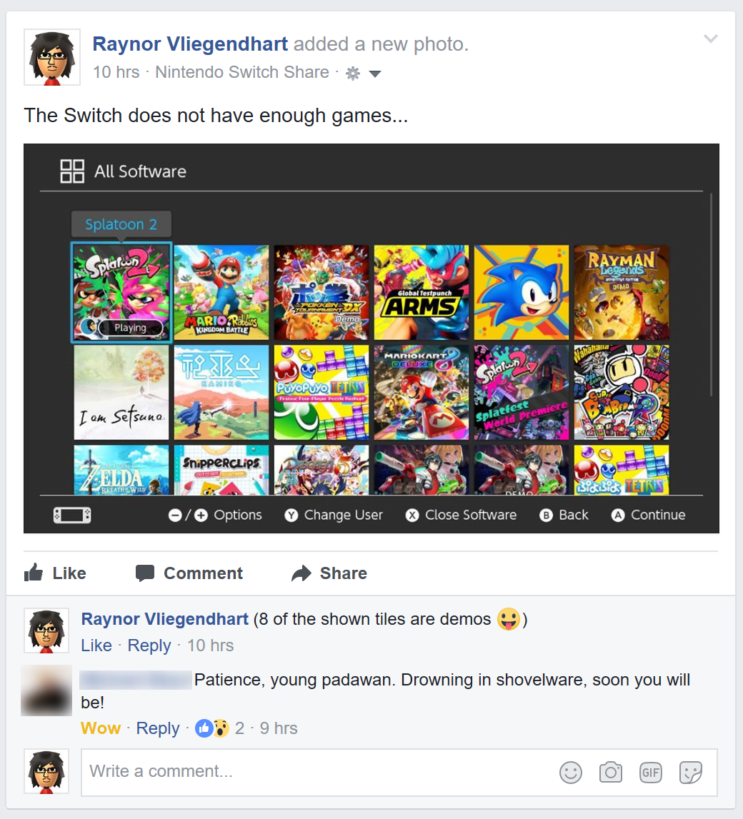 Ik heb zelf niks tegen de "Switch cartrigde tax" maar dat ben ik, er zijn genoeg mensen die 10 euro extra onacceptabel vinden terwijl dat op PS4 en XBO niet zo is, sterker nog het geeft ene negatief beeld af en kan (let op, kan niet zal) eventueel gevolgen hebben in de toekomst.