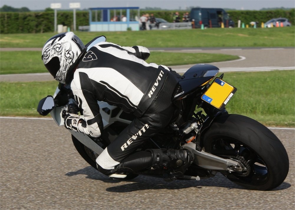 Nou ja, dat dus. Ik heb geen race ambities en rij vaak lekker kalm, maar die bochten en dat kijkgedrag moeten gewoon een automatisch dingetje zijn. Ik zou graag mijn 'bochten op snelheid' oefenen zoals klaverbladen, lange op/afritten etc. Een beetje gas geven vind ik niet erg, als het maar niet te gek word. Sowieso heb ik gemerkt dat mijn voorkant heel loom word (wat betreft wisselen van de ene bocht direct naar de andere) bij hogere snelheden of stevig optrekken, geloof dat dat iets te maken had met het grote voorwiel.