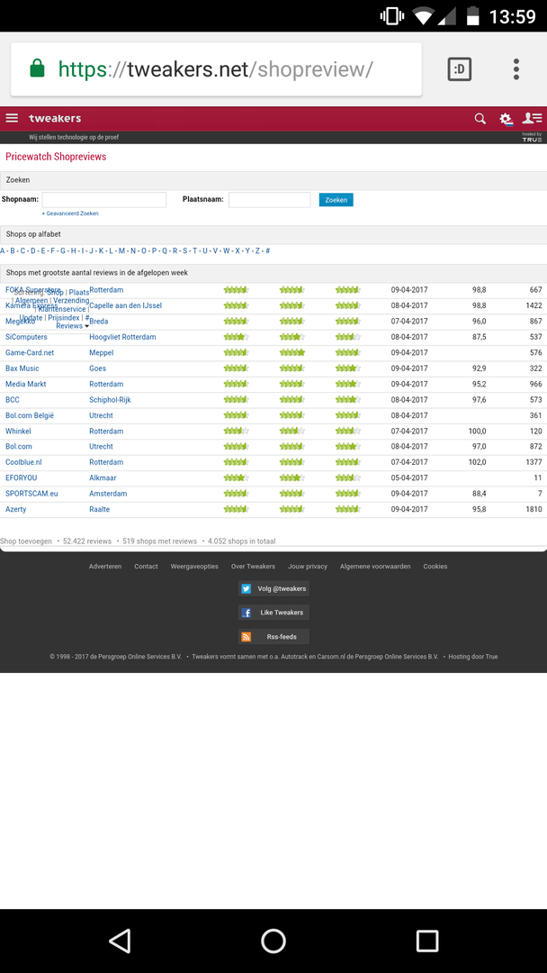 Bij het zoeken naar shop reviews op mijn Nexus 5x valt er een hoop tekst over elkaar heen. tevens lijk heel die pagina niet goed te schalen items aan de rechterkant kunnen ook niet bekeken worden / staat half uit beeld