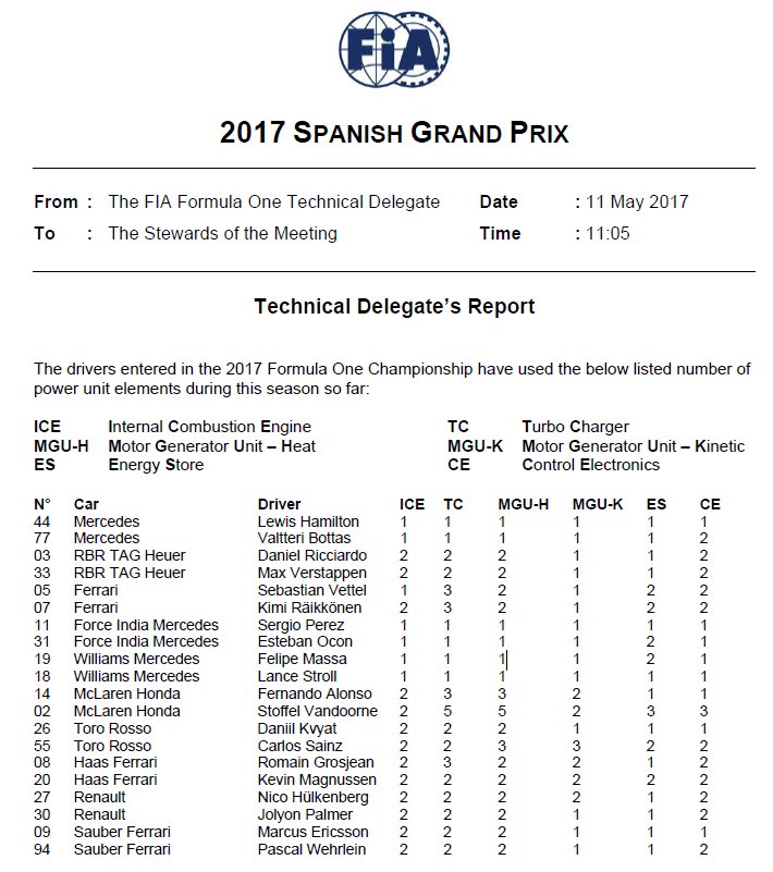 Nog steeds met de oude versie. Zoals je in eerder getoonde tabellen kan zien staat het getal bij zowel VER als RIC op 1 bij de MGU-K. Zou wel prettig zijn als deze wordt vervangen, maar tijdens de testen in Bahrein bleek de nieuwe MGU-K nog niet betrouwbaar genoeg.Siebeh schreef op donderdag 11 mei 2017 @ 14:36: