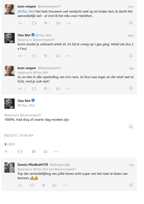 Hebben jullie de reactes gezien op het Red Bull twitter account? Schaam mij dood wat men daar allemaal roept over Max e.d... Die mensen zou je het internet moeten afpakken..Jasphur schreef op maandag 26 juni 2017 @ 08:51: