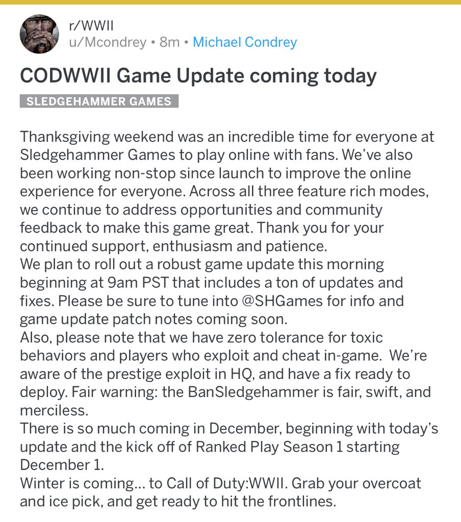Dan is het toch vrij spijtig dat er wederom SBMM isVrijdag schreef op zaterdag 2 december 2017 @ 13:01: