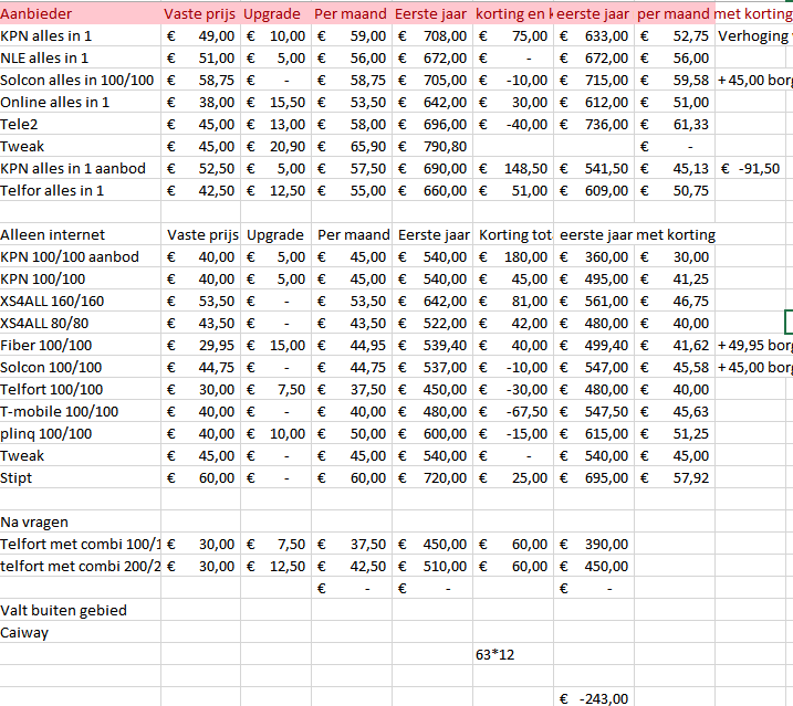 Prijs per maand bij online gaat naar 28.50 per maand. Nu is NLE 29.95 per maand en dan krijg ik er zo te zien bellen, TV en internet voor die prijs. Voor mij allemaal niet nodig, maar ja.. als het maar anderhalve Euro scheelt en gezien de positieve berichten is dat zeker een alternatief.